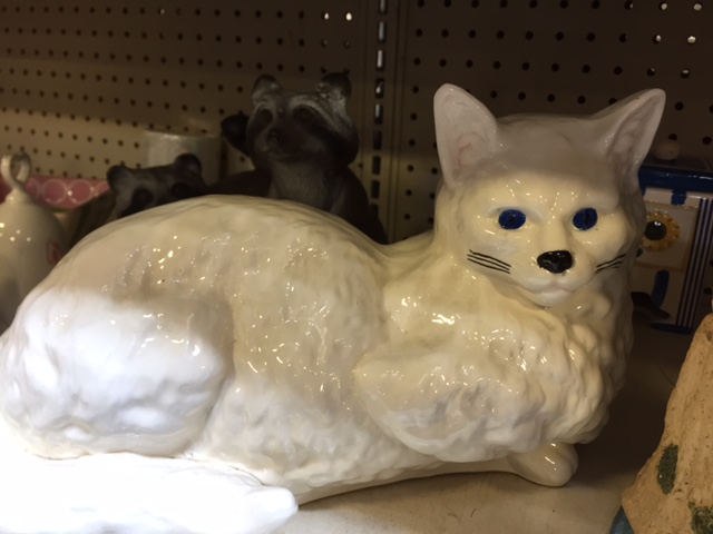 It’s a blue eyed, albino, war-painted, porcelain Angora cat statue. With that many adjectives, you know it’s worth the nearly $7.00 the thrift store is asking for this gem. I’m just wondering what kind of home this kitten came from. What curio cabinet has a large, dustless area where this pointy-eared demon used to be. Its startlingly humanoid face makes me think of Sir Patrick Stewart for some reason. Maybe that’s why there’s such a hefty price tag on this baby. It’s a celebri-cat. One of only a few thousand produced from China. Well, it’s from China anyway…